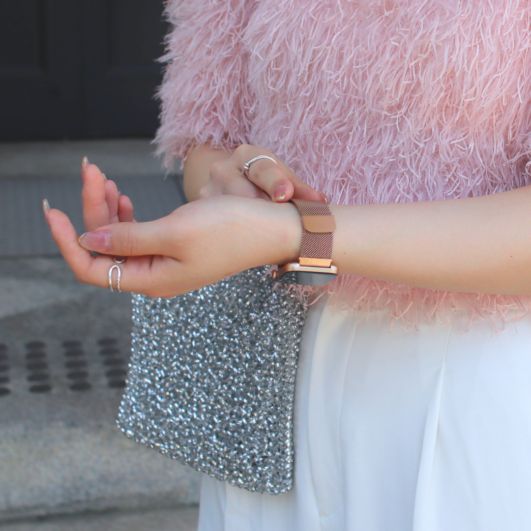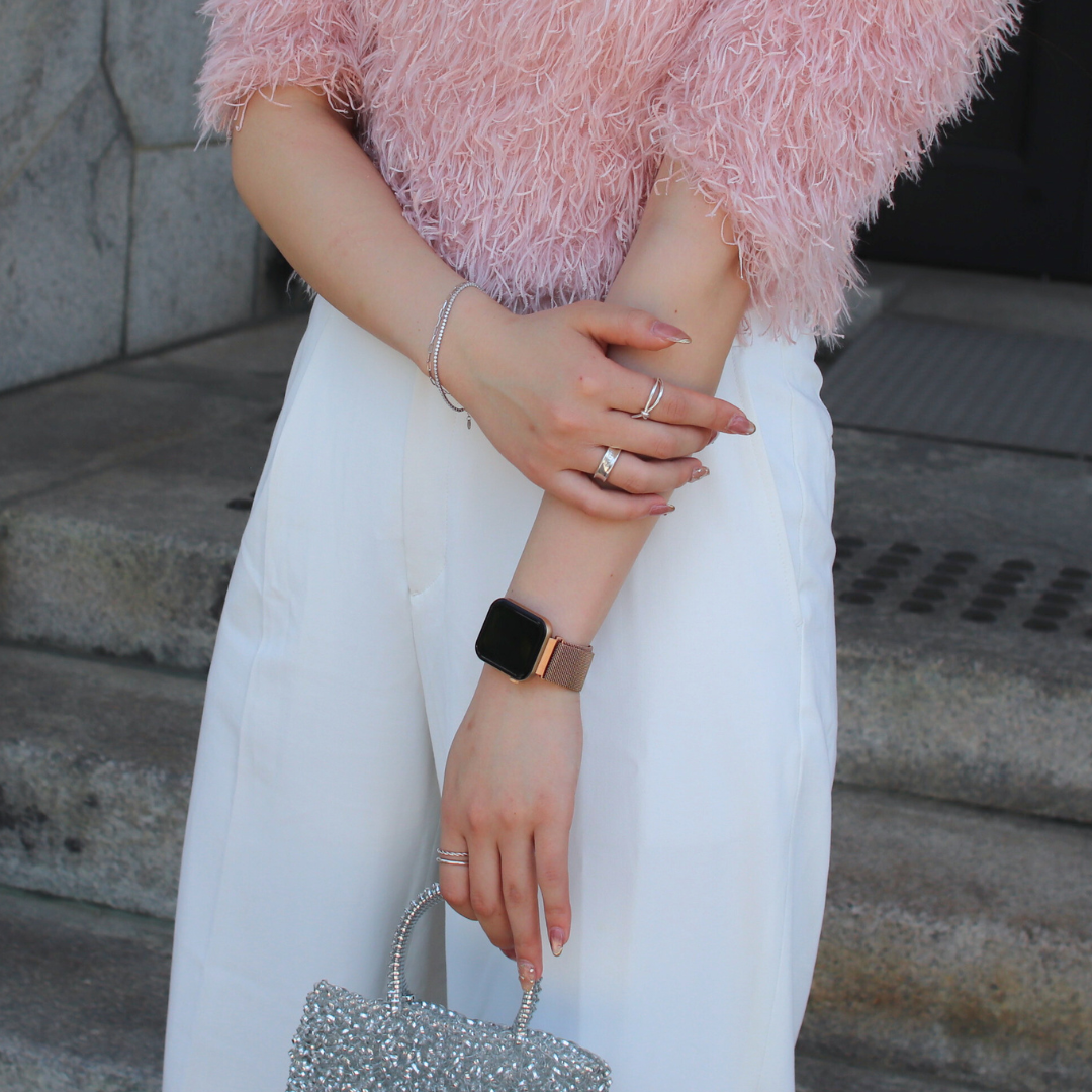 ステンレスメッシュベルトは製品の仕様上、ニット系衣服に引っかかる場合がございますので、ご理解の上ご購入の方をよろしくお願いいたします。