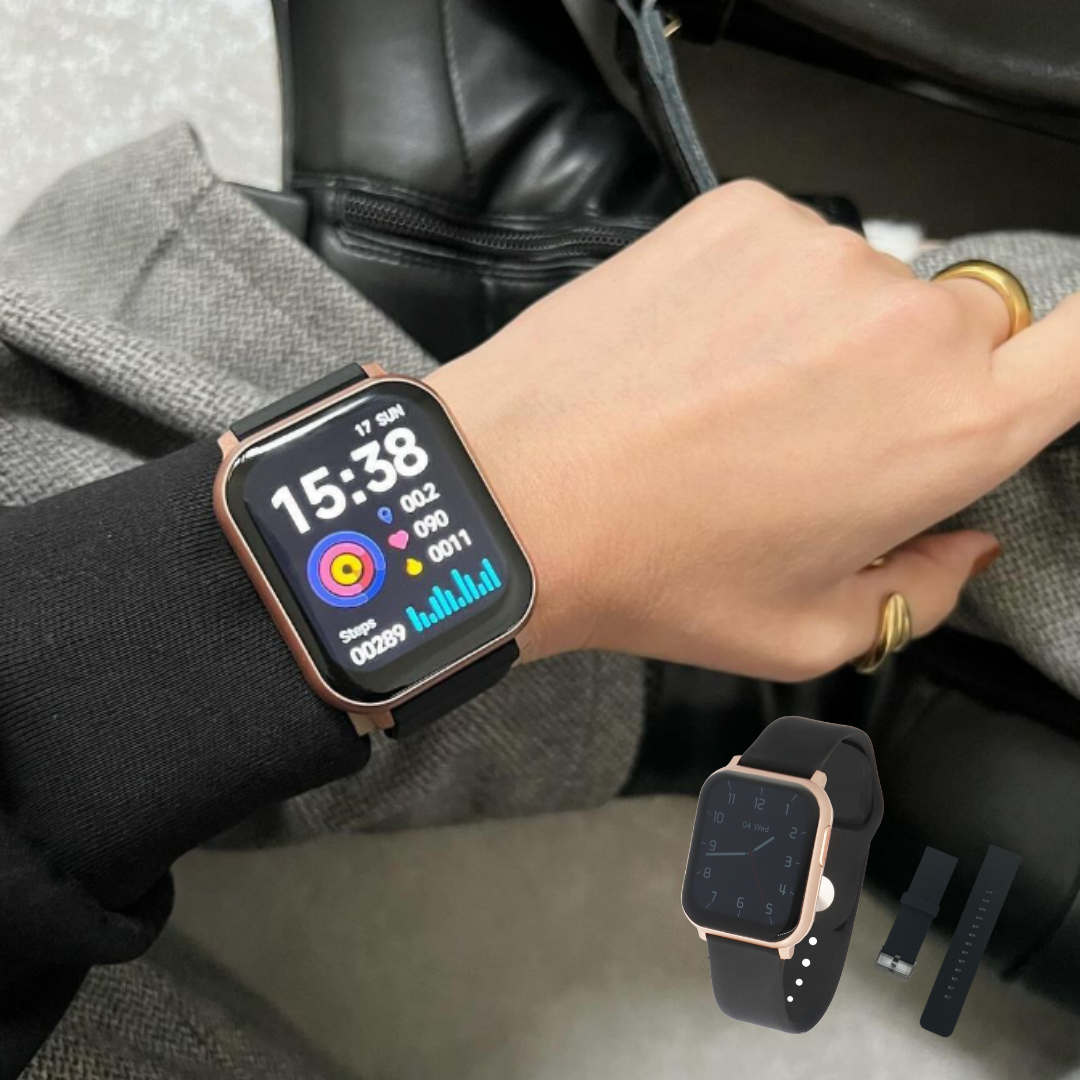 ・スマートウォッチゴールド×ブラックシリコンベルト EE02 GD AP BK 1点