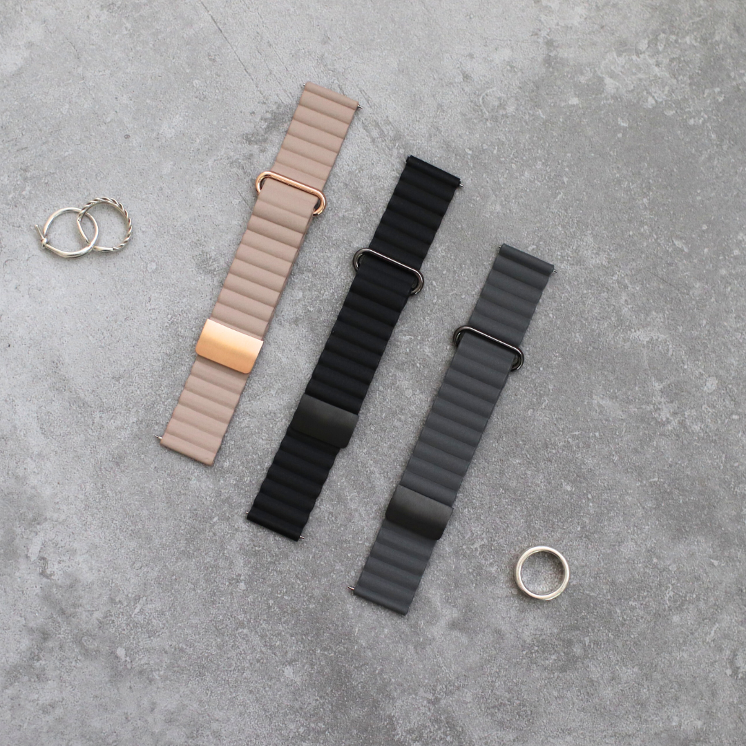 【5周年スペシャルセット】EE02 ゴールド×ブラックシリコンベルト+お好みのベルト+保護フィルム≪バッテリープレゼント≫