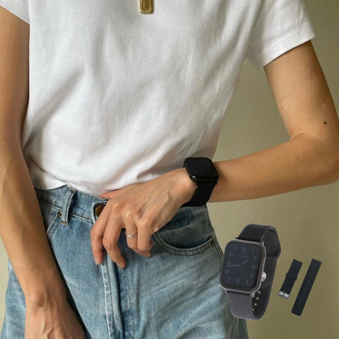 【5周年スペシャルセット】EE02 ブラック×ブラックシリコンベルト+お好みのベルト+保護フィルム≪バッテリープレゼント≫