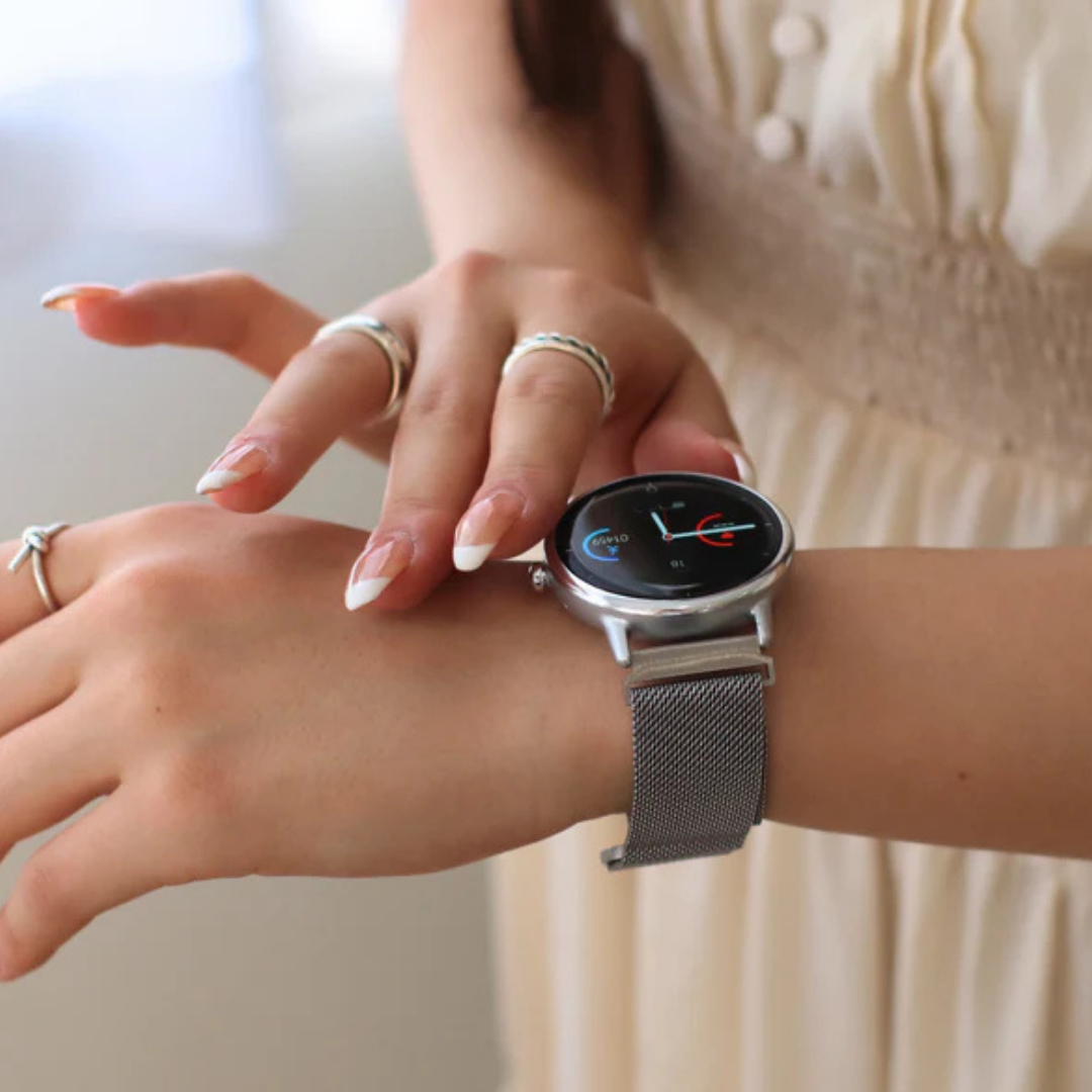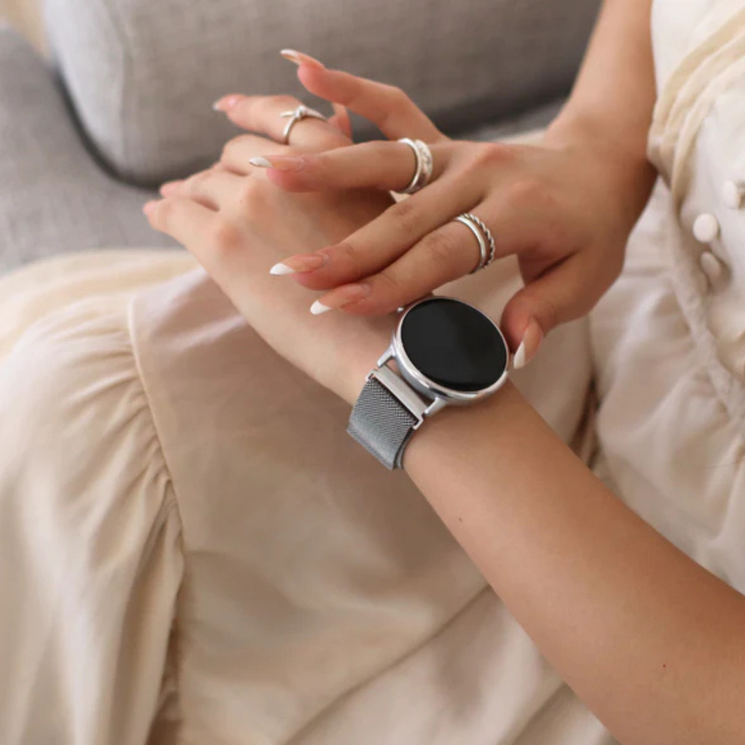 【クリスマスセット】EE02Plus シルバーステンレスメッシュベルト+レザーマグネットベルトGray+保護フィルム