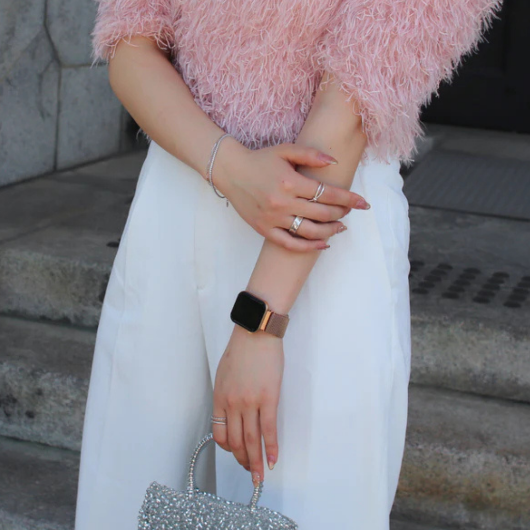 ステンレスメッシュベルトは製品の仕様上、ニット系衣服に引っかかる場合がございますので、ご理解の上ご購入の方をよろしくお願いいたします。