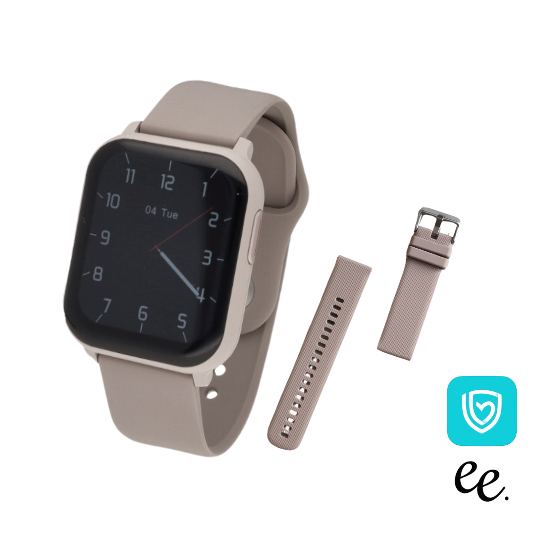 EE02 スマートウォッチグレージュxグレージュ GY AP GR シリコンラバー ベルトバンド 替えベルト付き ベルト幅22mm