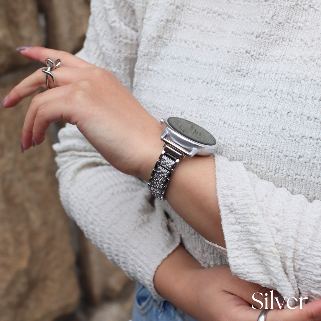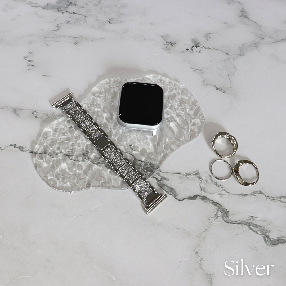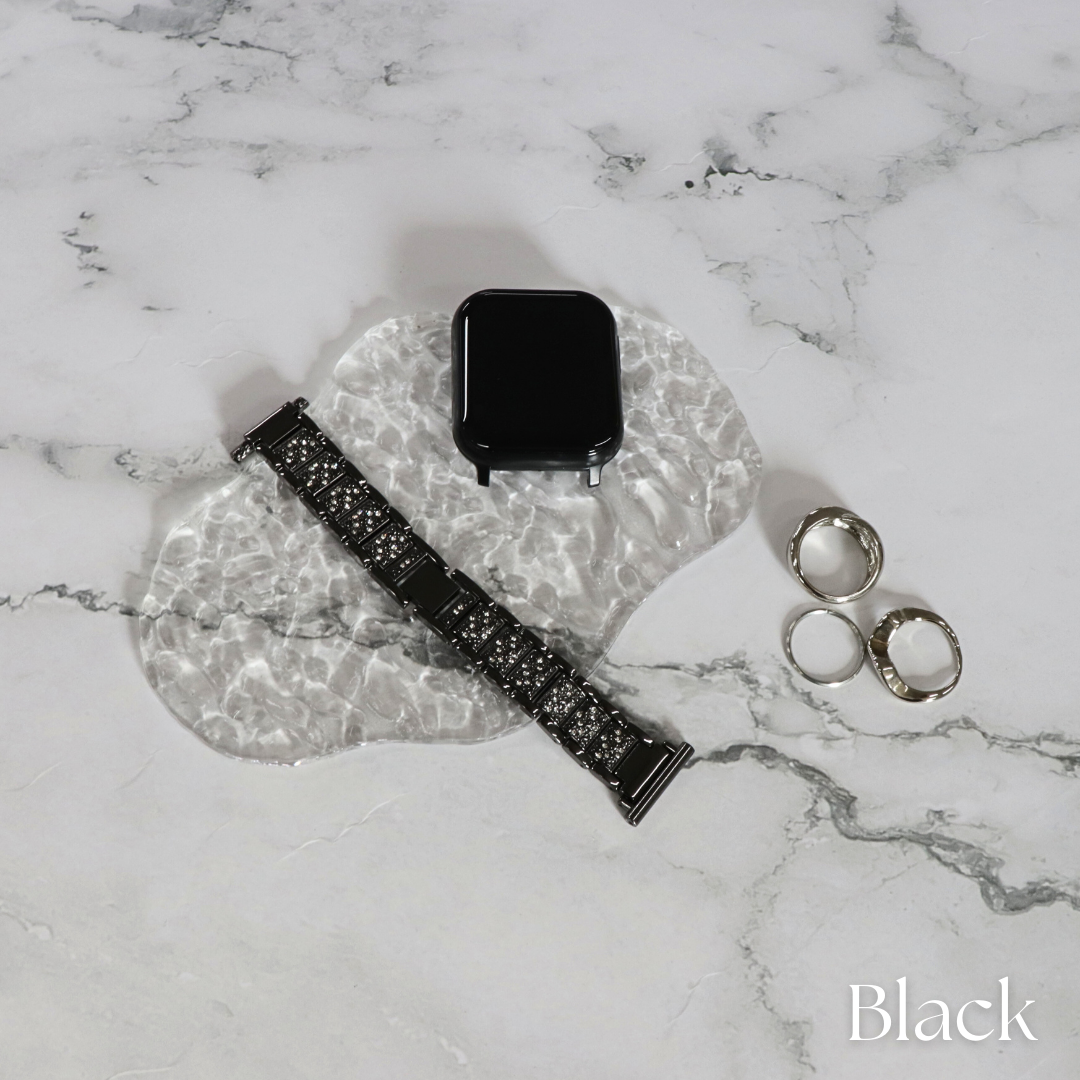 スマートウォッチをアクセサリー感覚で楽しめる上品なラメストーンベルト。