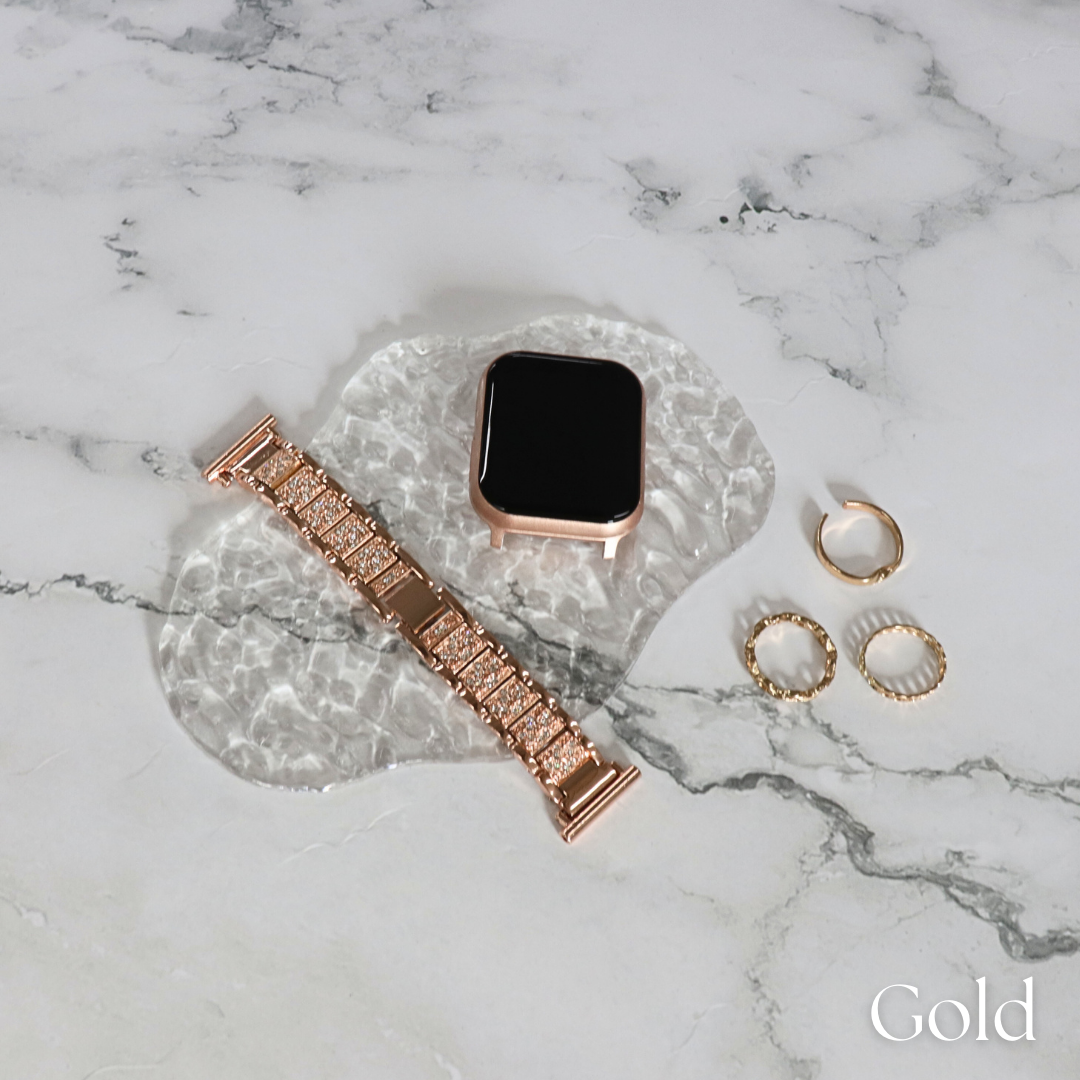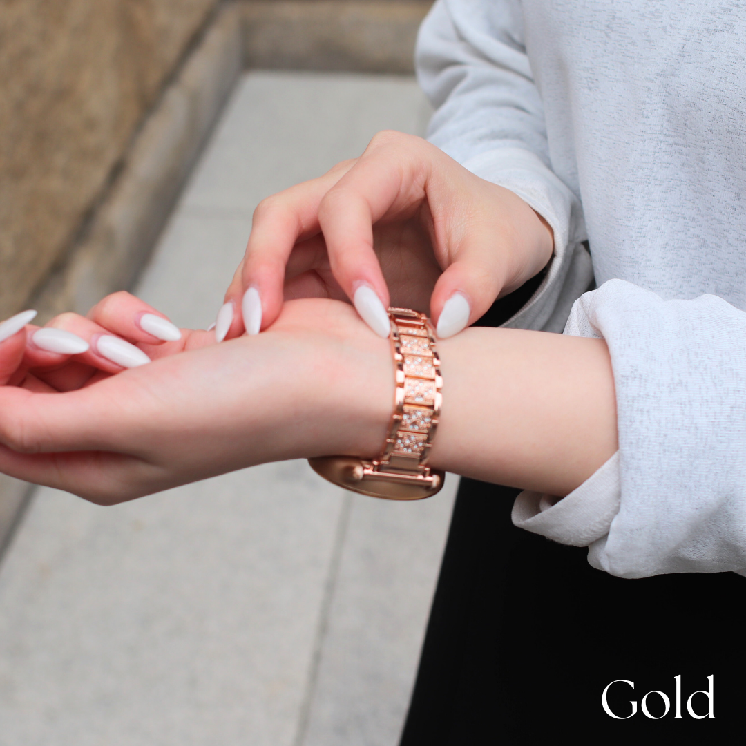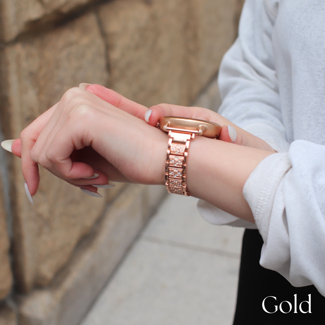 スマートウォッチをアクセサリー感覚で楽しめる上品なラメストーンベルト。