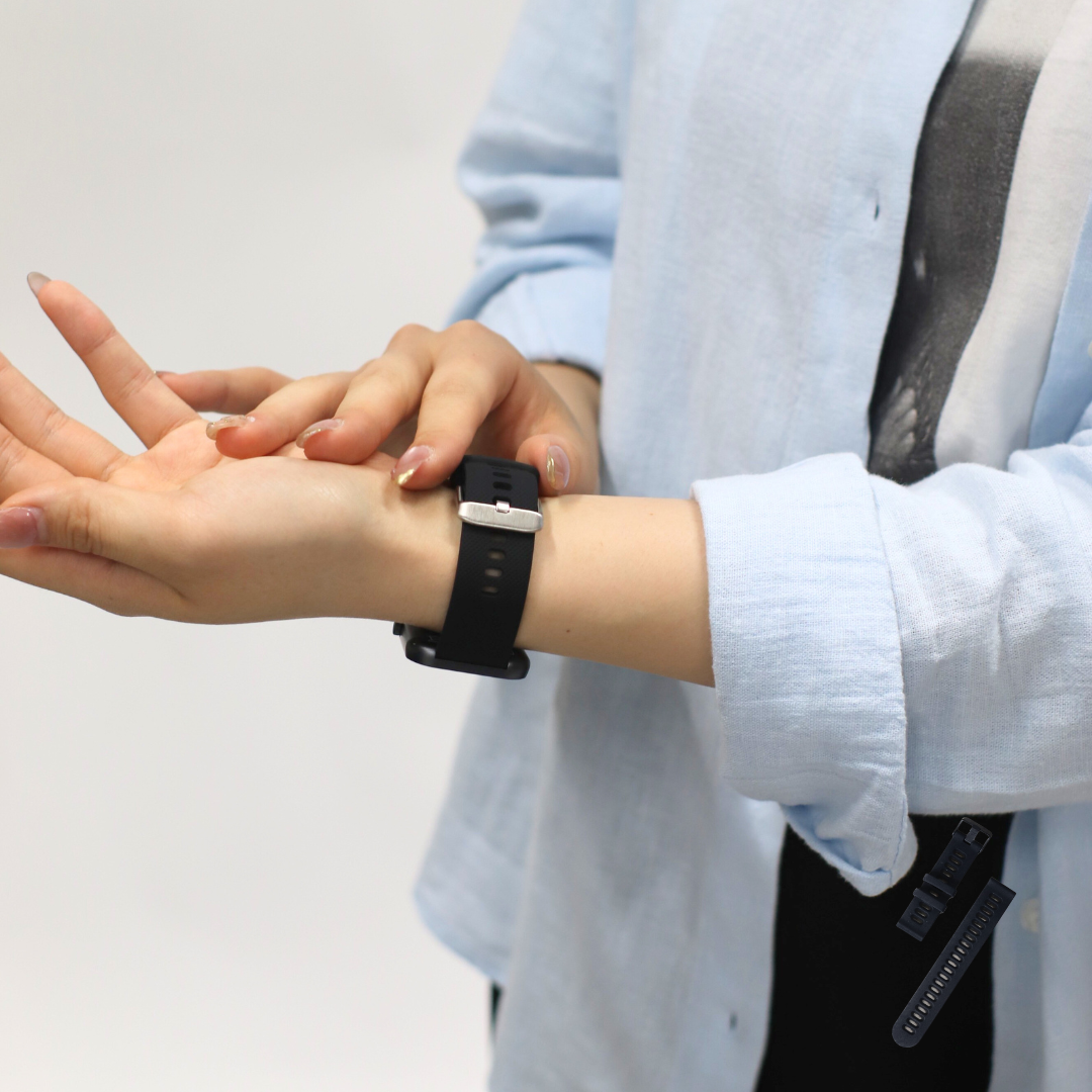 ●腕の汗を適時に拭き取ってください。バンドが石鹸水、汗などで汚染したり、またアレルギーなどある場合は、長時間触れたままにすると皮膚アレルギー掻痒を引き起こす可能性がありますので、十分に気を付けてください。